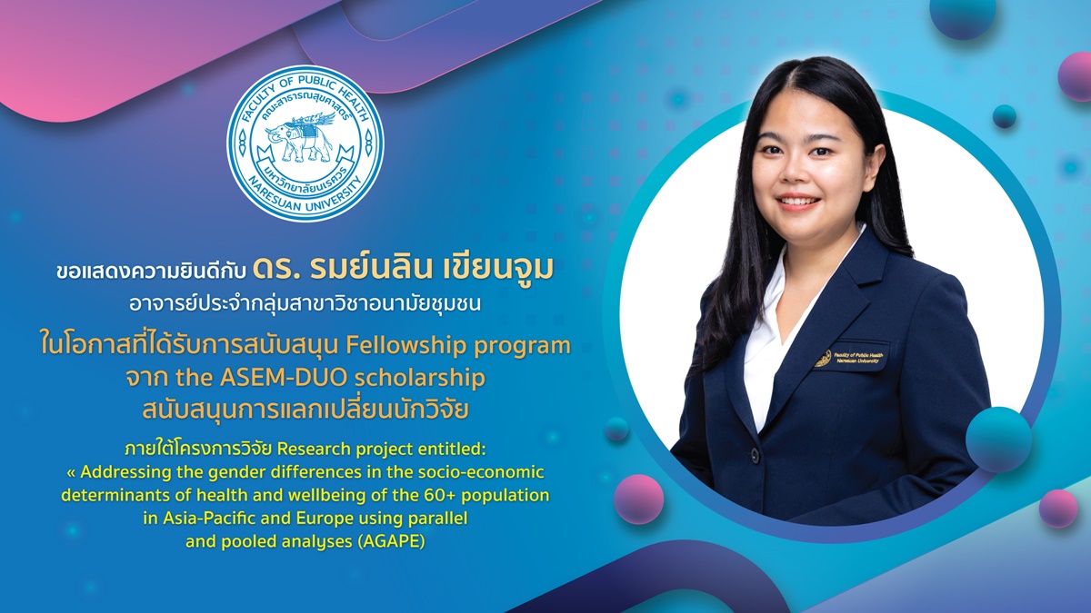 – ภายใต้โครงการวิจัย Research project entitled: « Addressing the gender differences in the socio-economic determinants of health and wellbeing of the 60+ population in Asia-Pacific and Europe using parallel and pooled analyses (AGAPE)