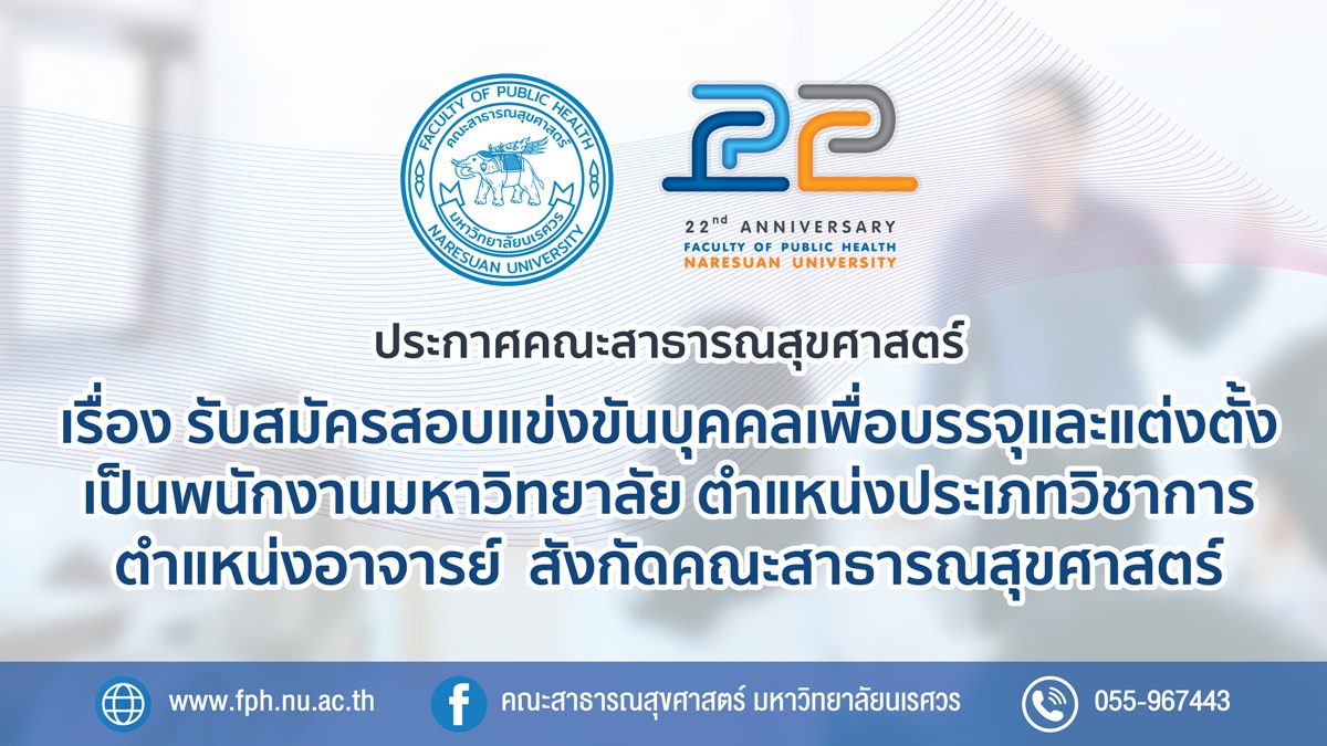 ด้วยคณะสาธารณสุขศาสตร์ มหาวิทยาลัยนเรศวร มีความประสงค์จะรับสมัครสอบแข่งขันบุคคล