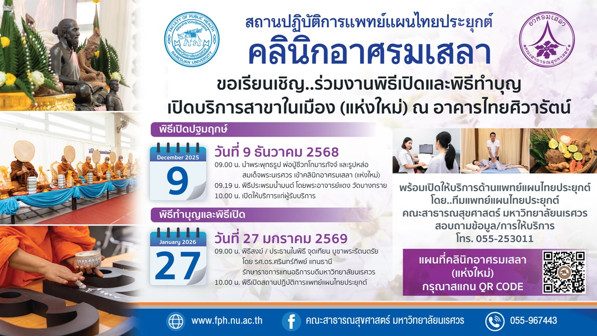 พร้อมเปิดให้บริการด้านแพทย์แผนไทยประยุกต์ โดย..ทีมแพทย์แผนไทยประยุกต์ มหาวิทยาลัยนเรศวร