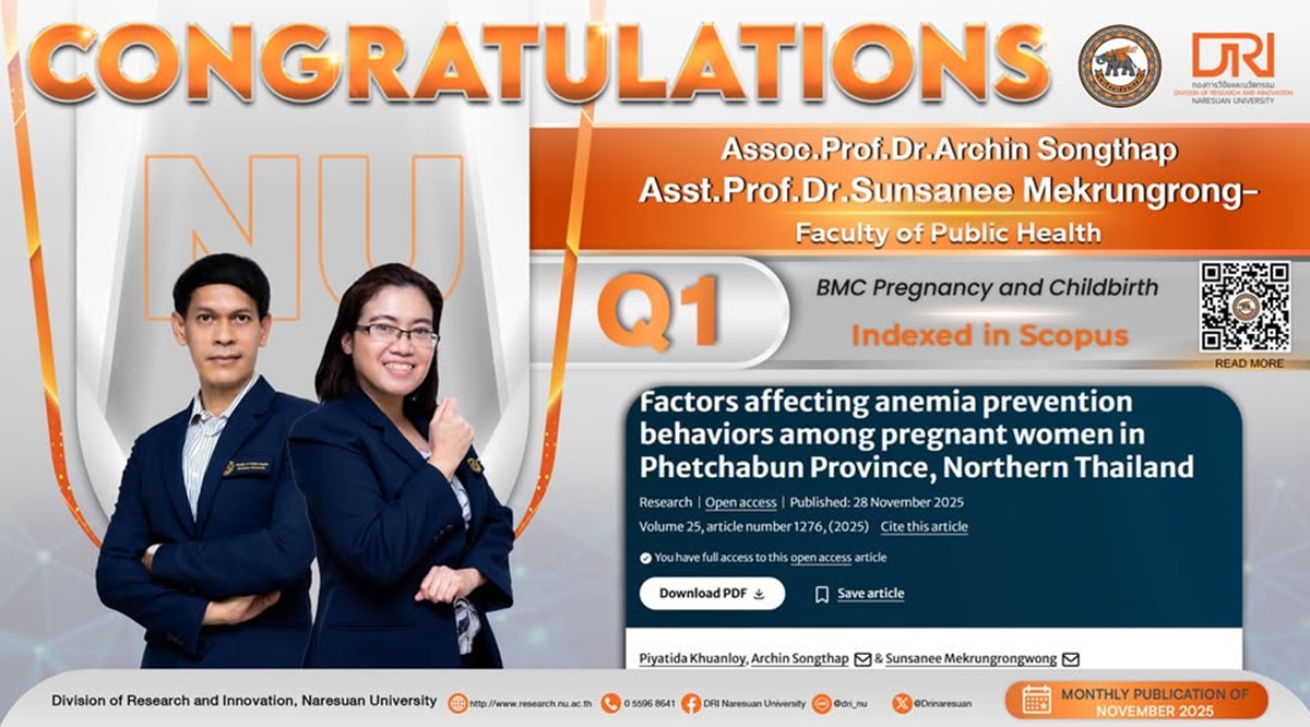 Congratulations to Assoc.Prof.Dr.Archin Songthap and-26112568 Congratulations to Assoc.Prof.Dr.Archin Songthap Asst.Prof.Dr.Sunsanee Mekrungrongwong Published in International Journal on SCOPUS link https://doi.org/10.1186/s12884-025-08470-7 Related posts:Fundamental Fund 2569 2nd Research Network Sandbox by OPS MHESI X NUThe 54th Asia Pacific Academic Consortium for Public Health (APACPH)รางวัลเชิดชูเกียรติจากเครือข่ายวิชาการสาธารณสุขอนุภูมิภาคลุ่มน้ำโขง