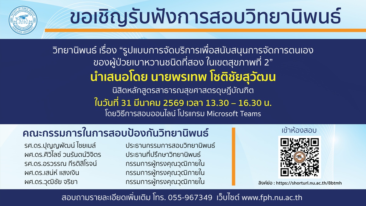 ขอเชิญรับฟังการสอบวิทยานิพนธ์