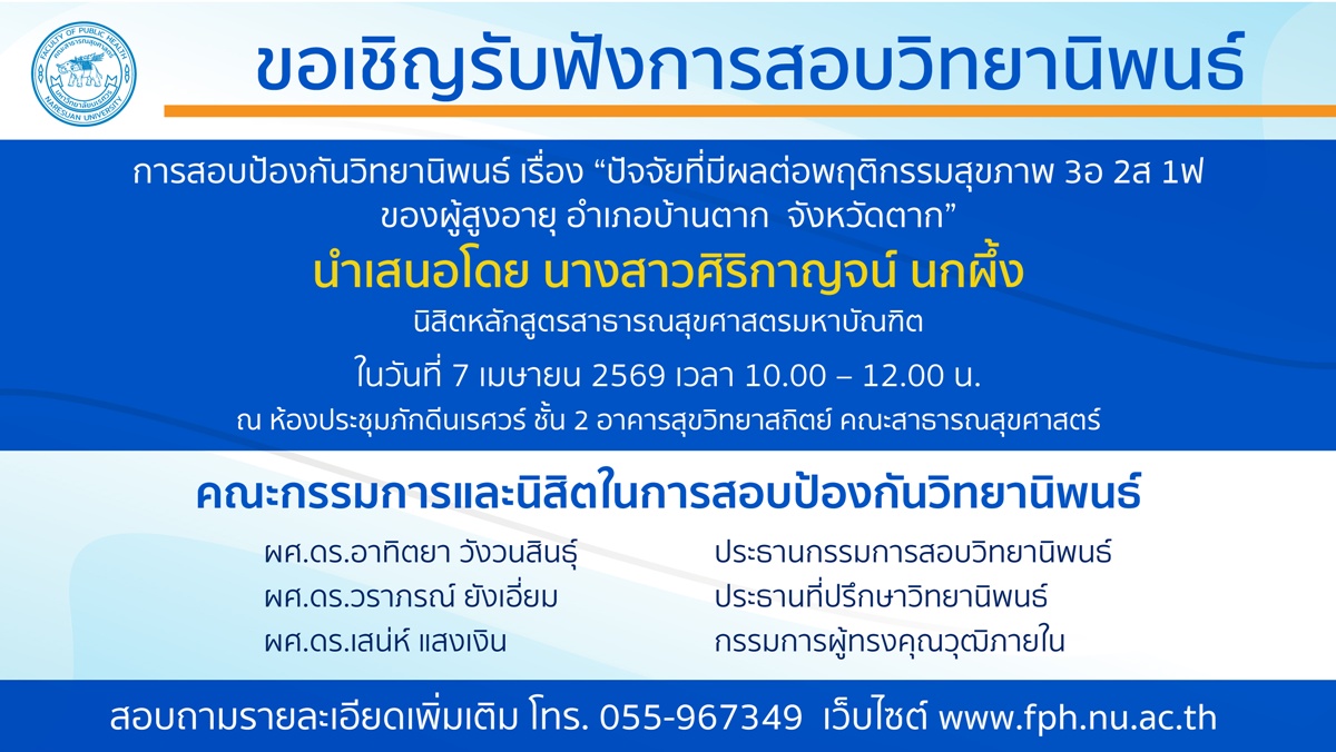 ณ ห้องประชุมภักดีนเรศวร์ ชั้น 2 อาคารสุขวิทยาสถิตย์ คณะสาธารณสุขศาสตร์
