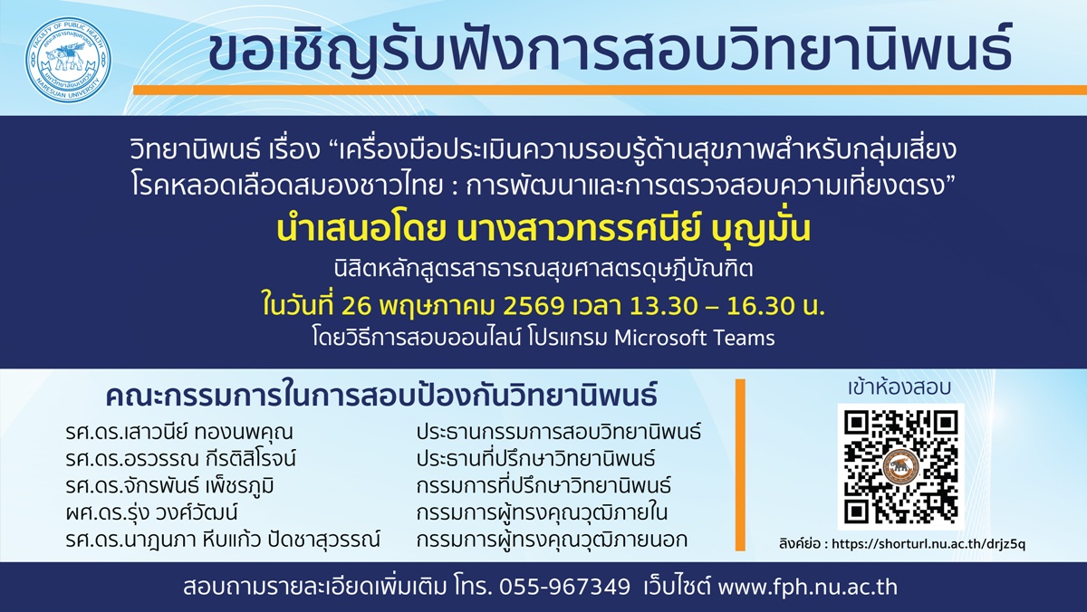 ขอเชิญรับฟังการสอบป้องกันวิทยานิพนธ์